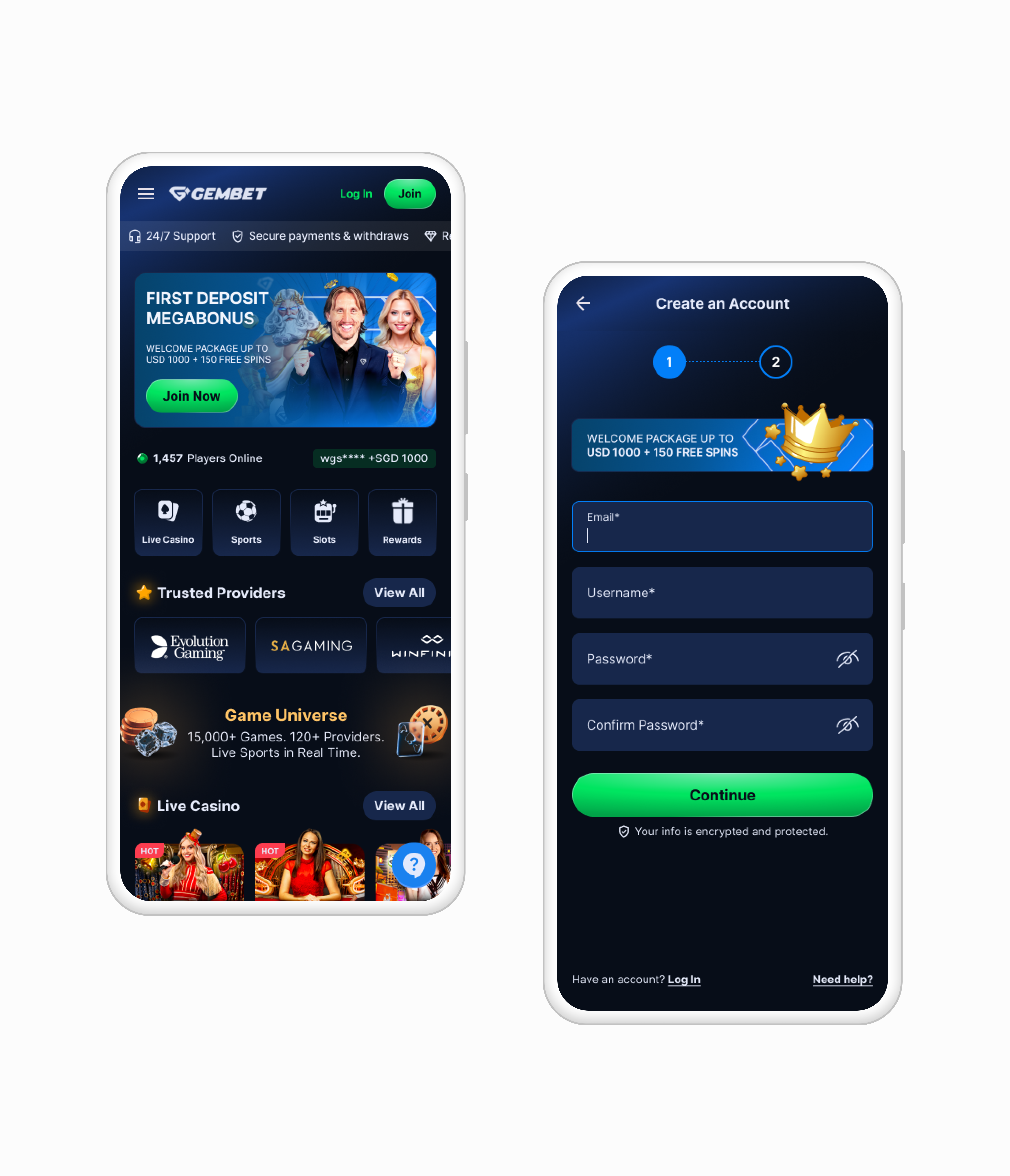 GemBet is an iGaming platform expanding into Southeast Asia. I restructured the landing page and registration flow to improve trust, minimize friction, and guide users toward signup.