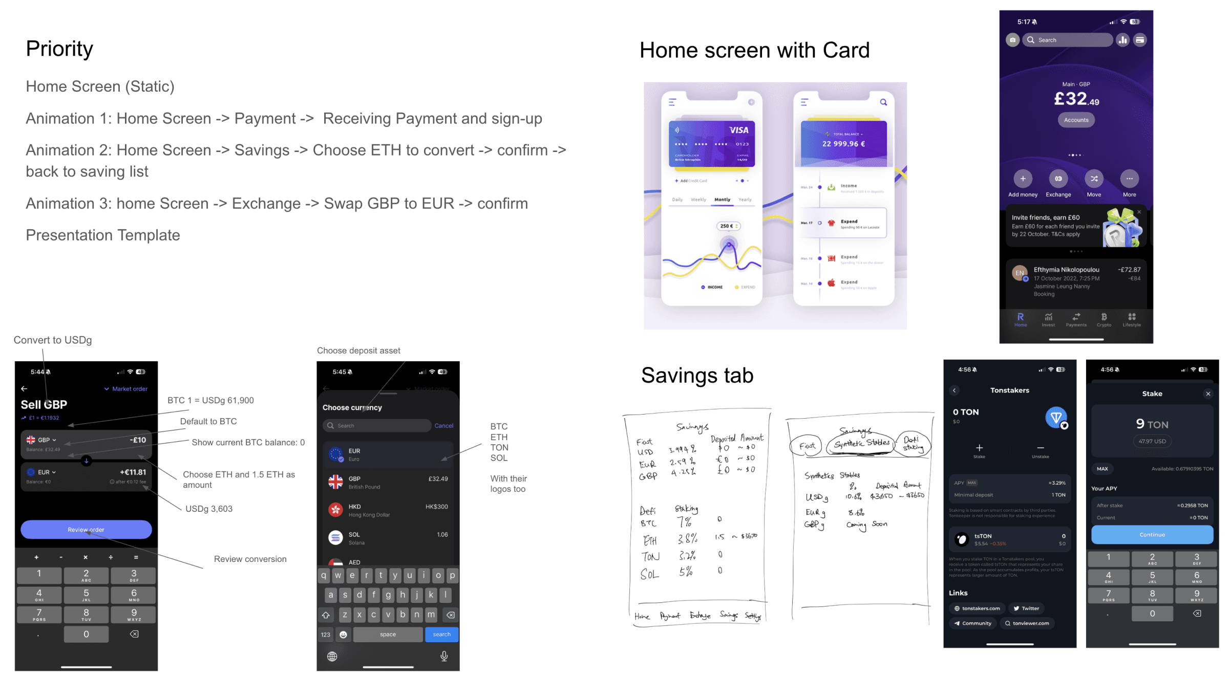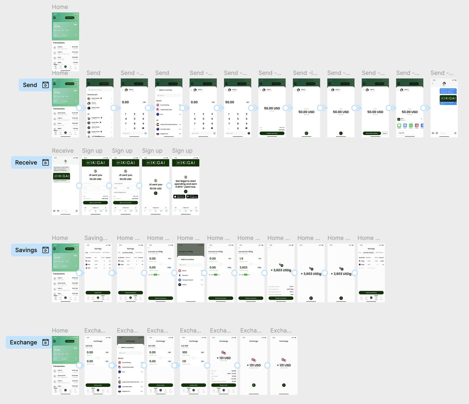 I designed complete, connected screens across sending, receiving, savings, and exchange, and walked through them live with the founder to validate quickly and make the product clear and demo-ready.